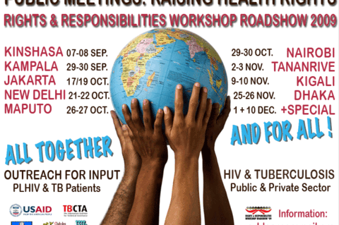 The project organisers hoped that the campaign would be an open and participatory consultation process combining face-to-face meetings with use of online resources to publish, edit, and promote both the process and the substance of the document as a rights-based charter for people infected or affected by TB and TB-HIV. A series of consultation meetings and forums were to be held in diverse regions of the world, from Lima to Lusaka, Dacca to Dakar, encouraging the participation of individuals and organisations on the ground and online.