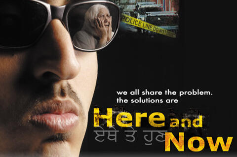 Here and Now was a communication-based violence prevention project developed in 2005 by Headlines Theatre in collaboration with members of the Indo-Canadian community in the Lower Mainland of British Columbia (Victoria, Canada). The project used the methodology of Forum Theatre, shared through live productions and an interactive webcast, to highlight and draw on the experiences of immigrant communities who are struggling with issues of integration, multiculturalism, and conflict. The project used "primal language" to tell collective stories about the community's struggle with violence in an effort to engender community dialogue and action. The webcast element reflected the goal of functioning as a vehicle for other communities, worldwide, to investigate the roots of (and solutions to) violence in their own contexts.